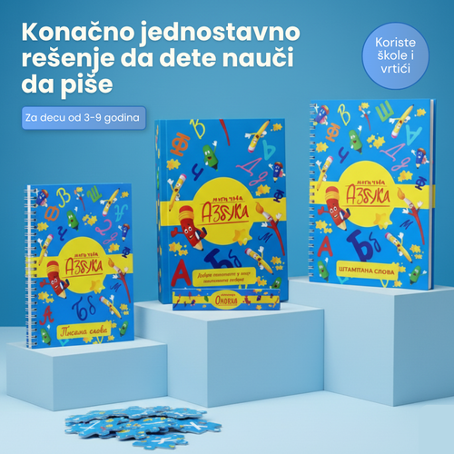 S obzirom na to da deca odrastaju u periodu dominacije informatičke pismenosti, ona gube interesovanje za pisanjem rukom. Smatrajući da je pravilno pisanje neophodna, osnovna veština kojom bi sva deca trebala da ovladaju, osmislili smo sveske za vežbanje koje sadrže reljefne otiske slova i brojeva, kao i uputstva za njihovo pravilno pisanje.